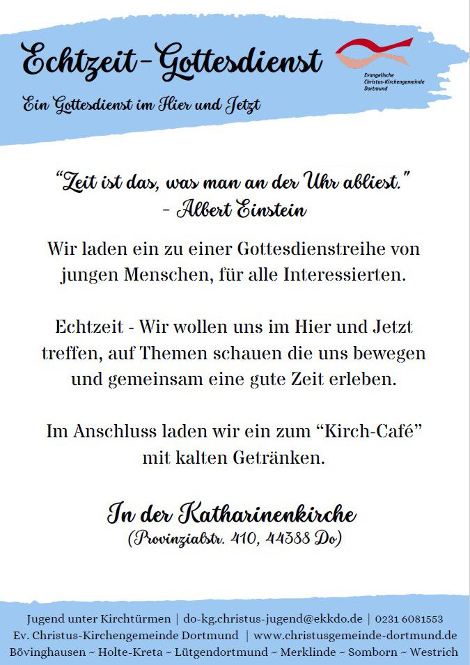 Echtzeit-Gottesdienst – Termine werden bekanntgegeben!
